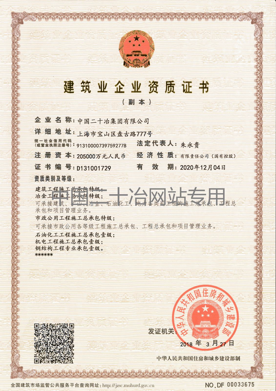 Engineering Construction Qualification (Ministry of Housing and Urban-Rural Development)